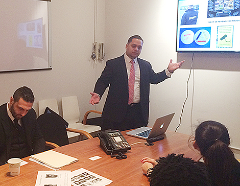 Police Officer Rodney Rosado (NYPD-5th Precinct) made a presentation on recent crime trends in the 5th Precinct, shared best practices for loss prevention staff who interact customers and reviewed crime prevention strategies for retailers. Officer Rosado was joined by his counterpart at the 1st Precinct, Police Officer George Liropoulos, who shared information on trends within the 1st Precinct and plans for an increased presence along Broadway during the holiday season. In addition to learning effective loss prevention strategies, retailers had a chance to network with peer SoHo Broadway retail professionals.
