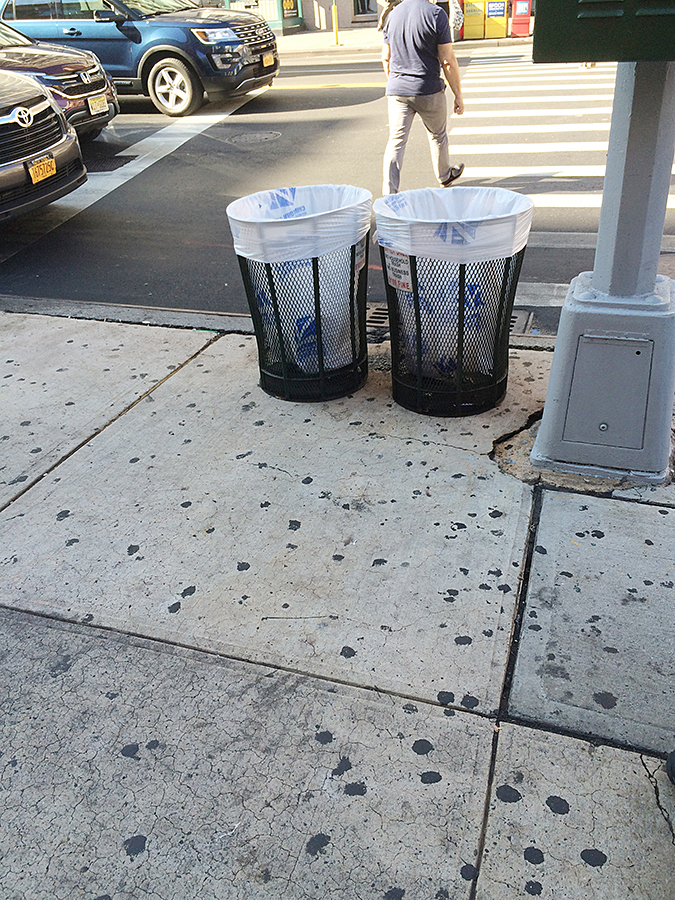 John Kaminsky and Paul Manzi man the power washing truck and work together like a well-oiled machine. Each corner is cleared of trash and recycling receptacles, scrubbed and power washed. Before the receptacles are returned, the liner is removed and cleaned and then the receptacle is cleaned.