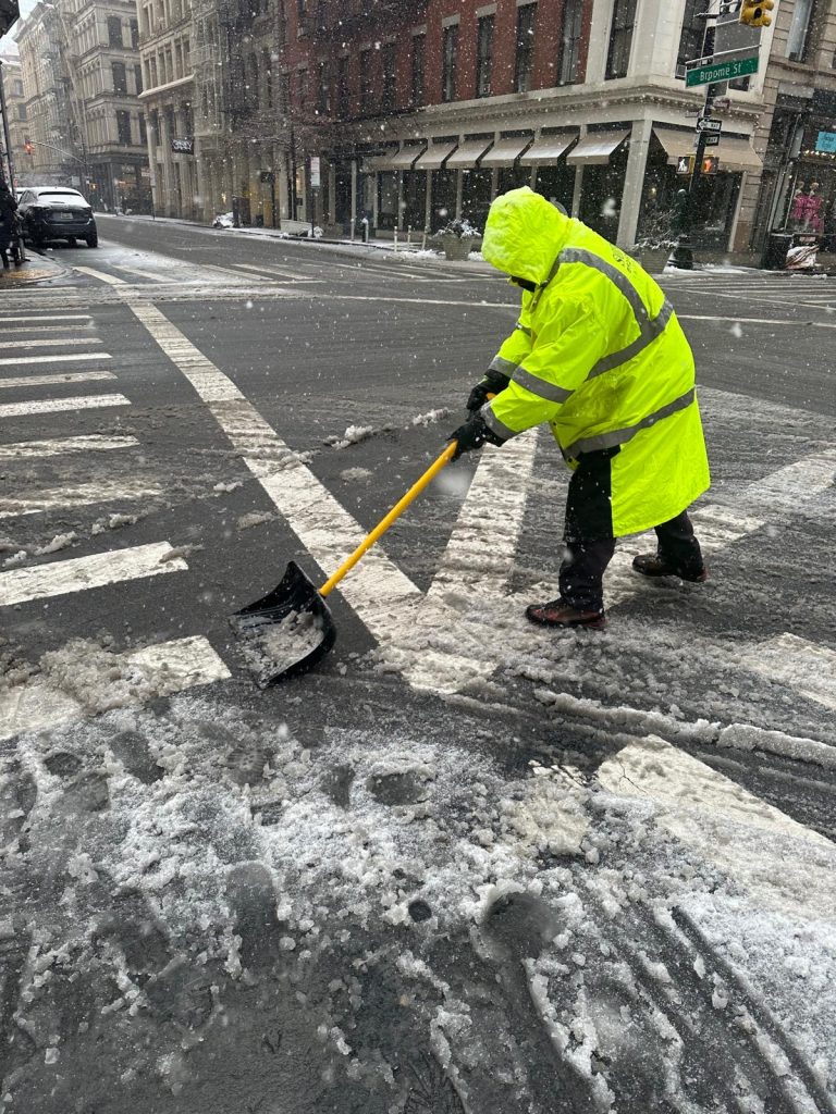 Keeping our sidewalks clear of snow, ice, and slush is a big job over the winter months. With every storm and its aftermath, the SoHo Broadway Clean Team (provided in partnership with Streetplus) removes snow and ice from crosswalks, catch basins, bus stops, subway entrances, and the areas surrounding fire hydrants.