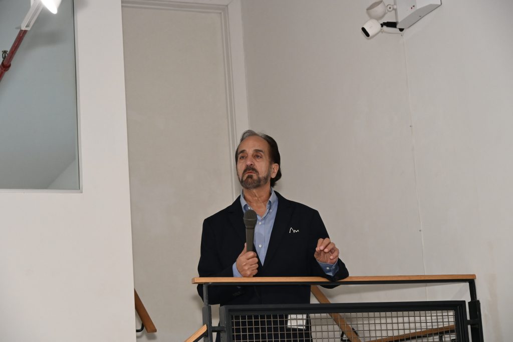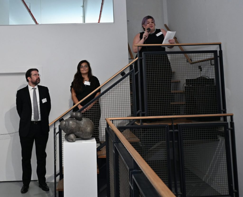 Board President James Cavello and Margarite Almeida welcomed attendees to Westwood Gallery and introduced its 30th anniversary exhibition, on display.