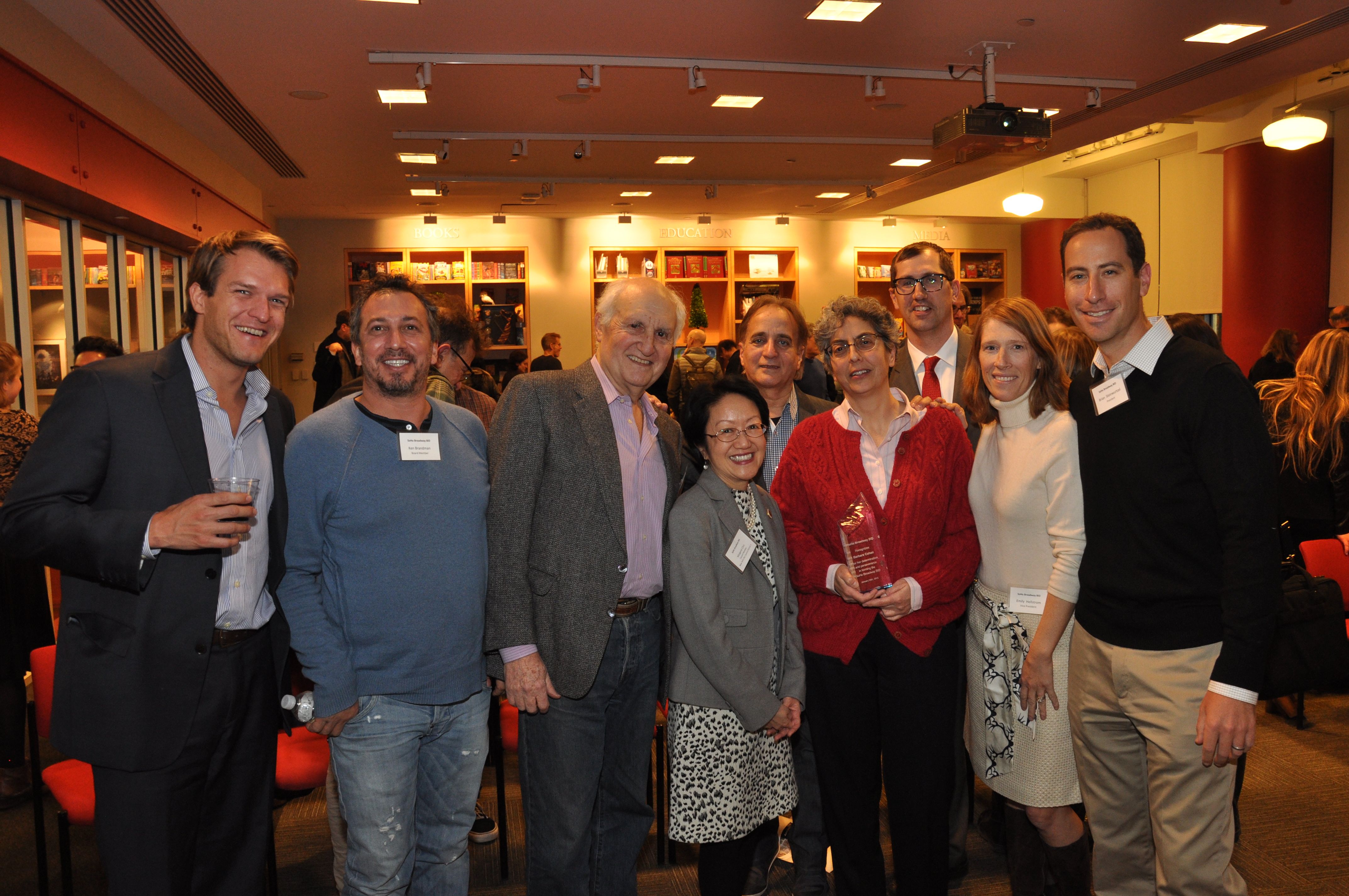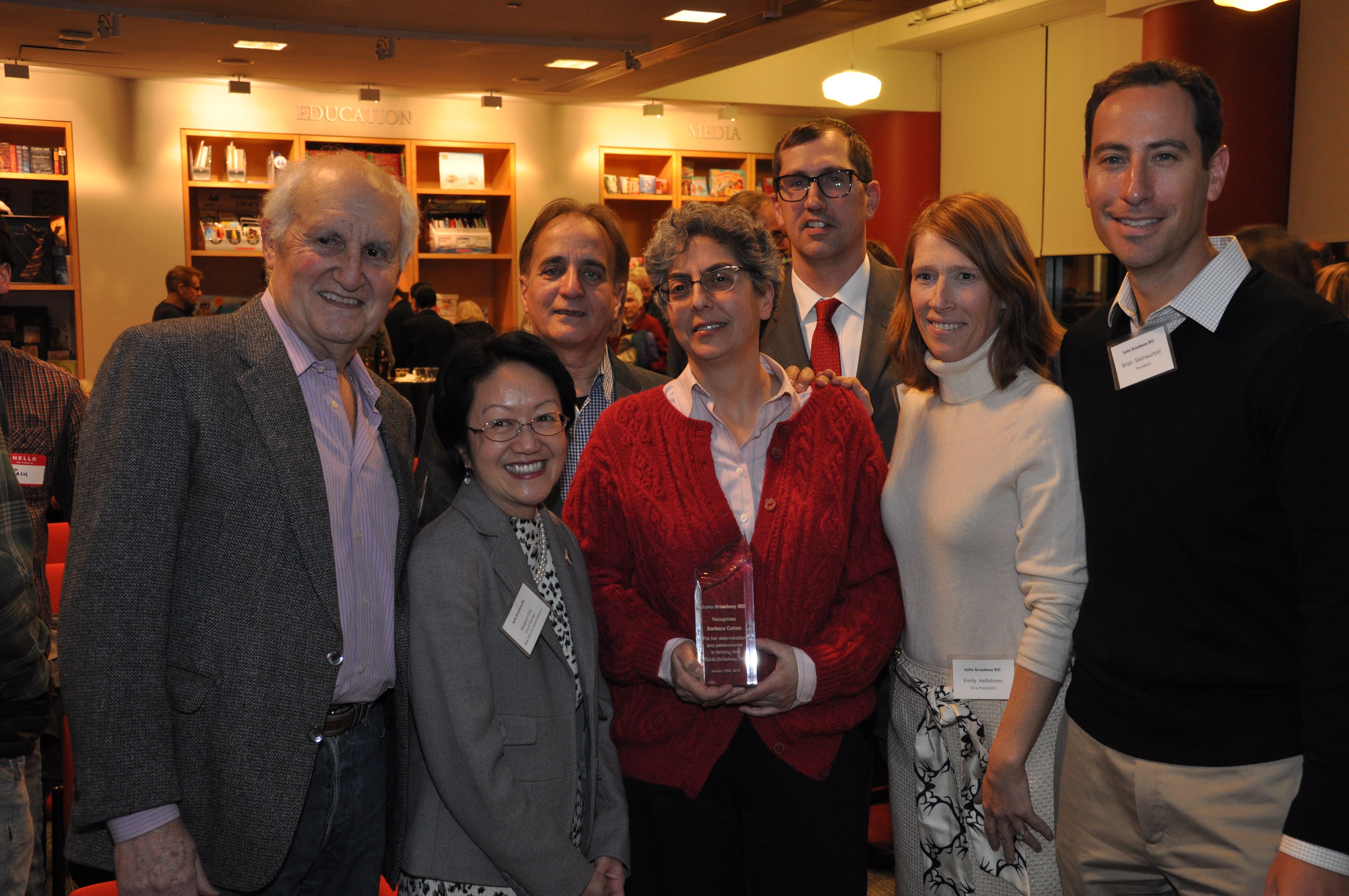 The program concluded with the BID’s first Recognition Award being presented to Barbara Cohen for her four years of effort and determination that lead to the approval and formation of the SoHo Broadway BID.