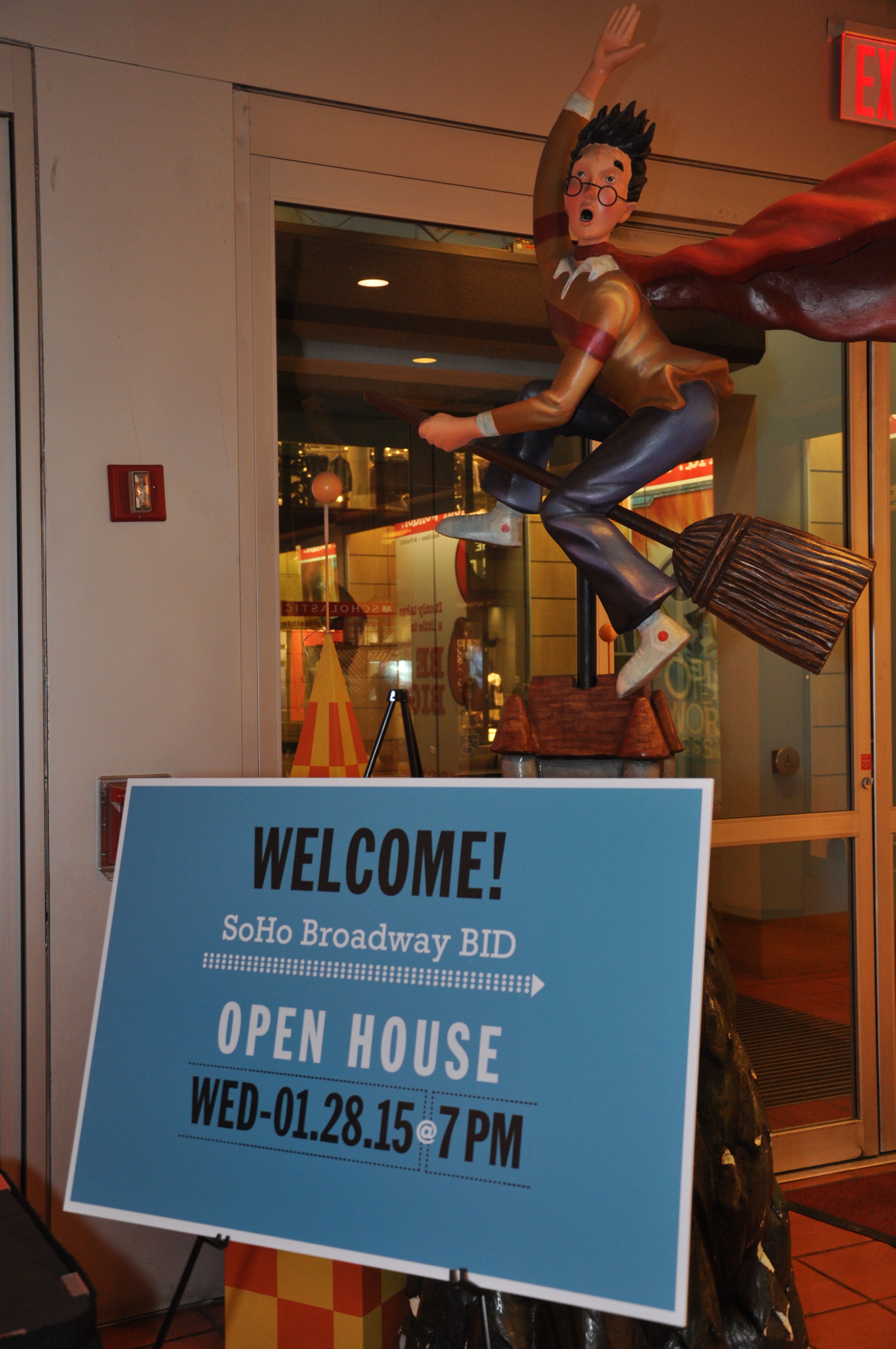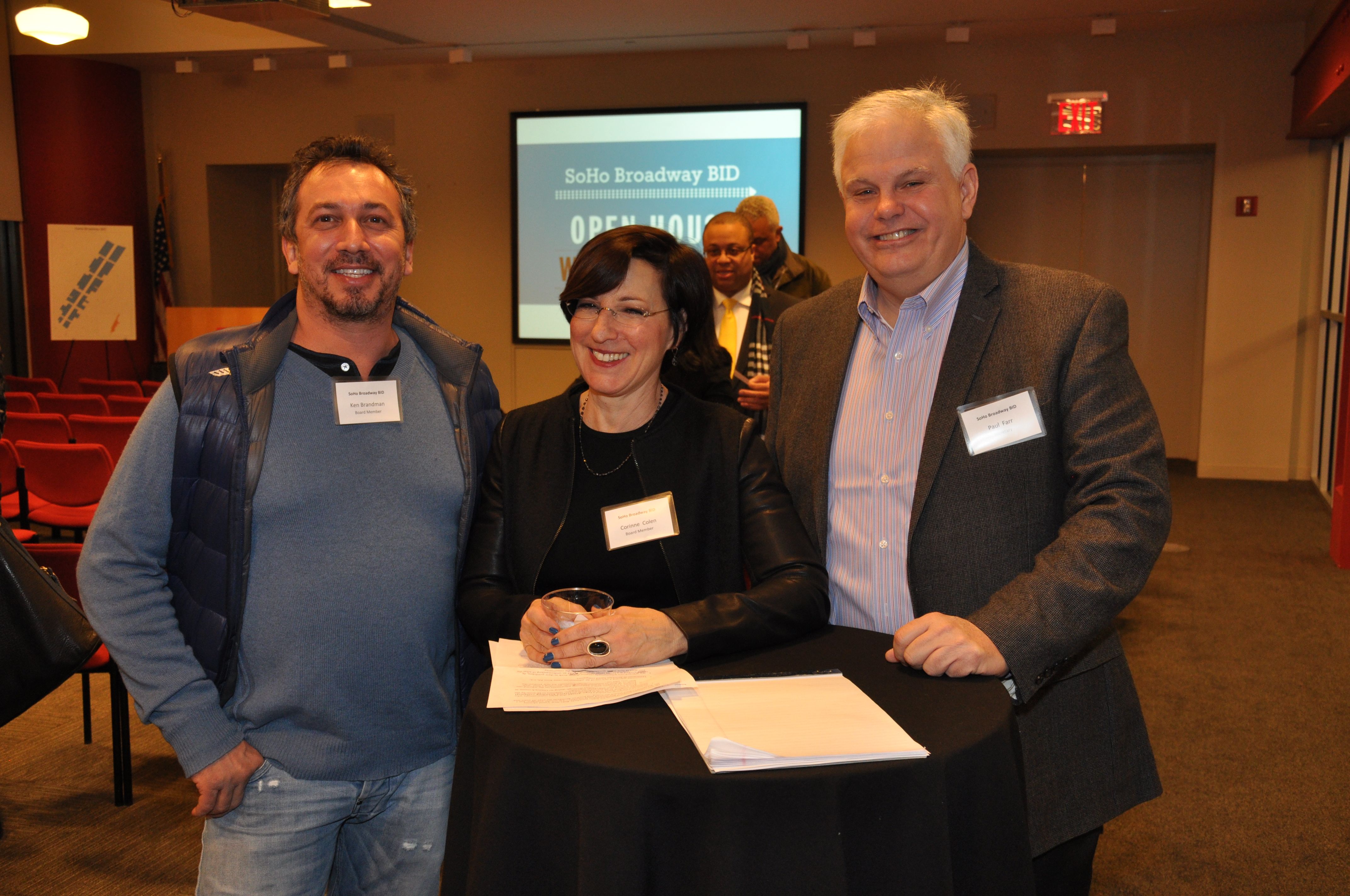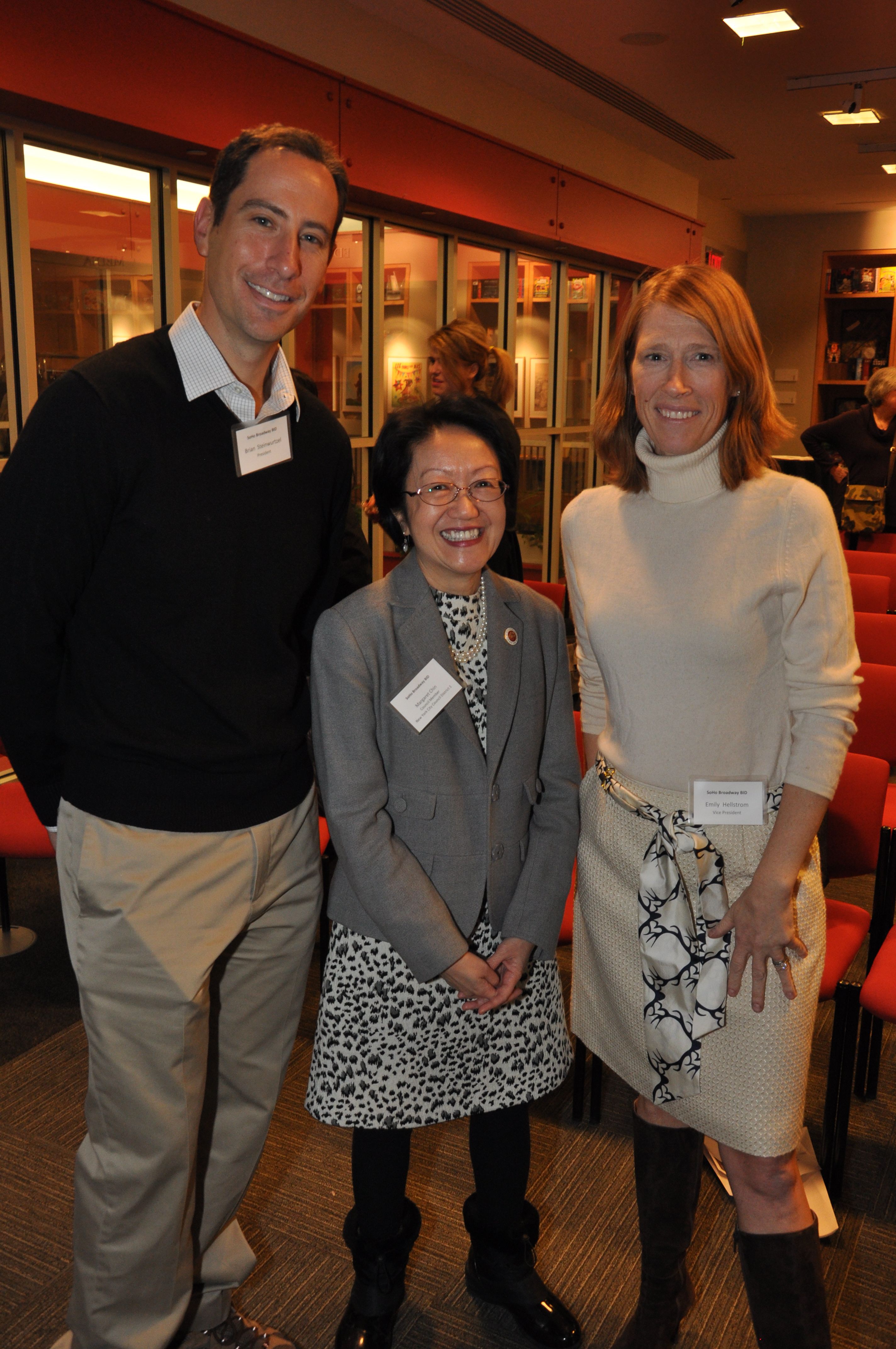 Brian Steinwurtzel (President) and Emily Hellstrom (Vice President) welcomed approximately 100 guests to the Open House that was held at Scholastic. The program included remarks from Council Member Margaret Chin and Community Board 2 Chairperson Tobi Bergman. In reflecting on the lengthy approval process, Council Member Chin highlighted the importance of giving residential property owners and tenants an expanded voice within the SoHo Broadway BID.
