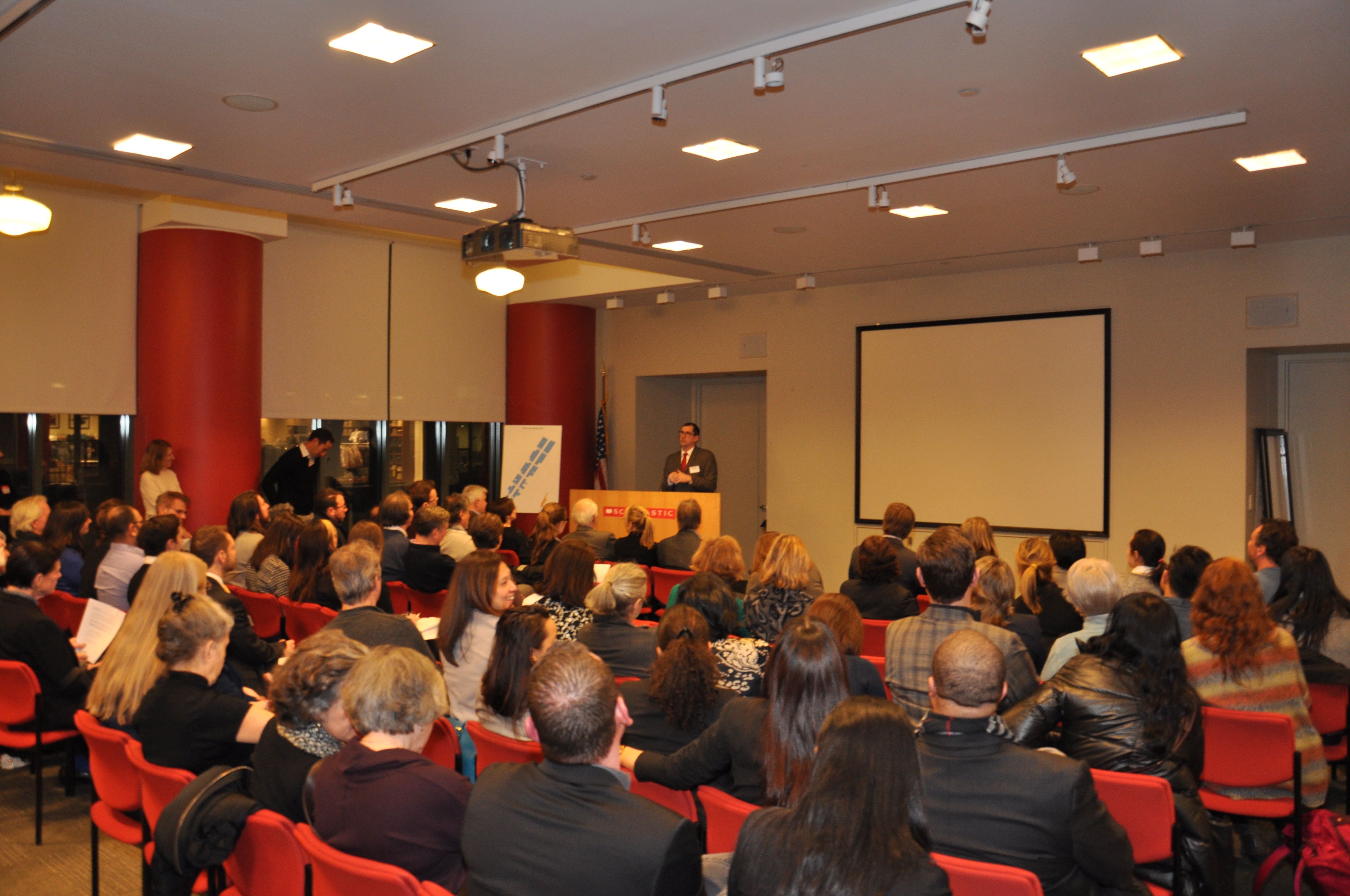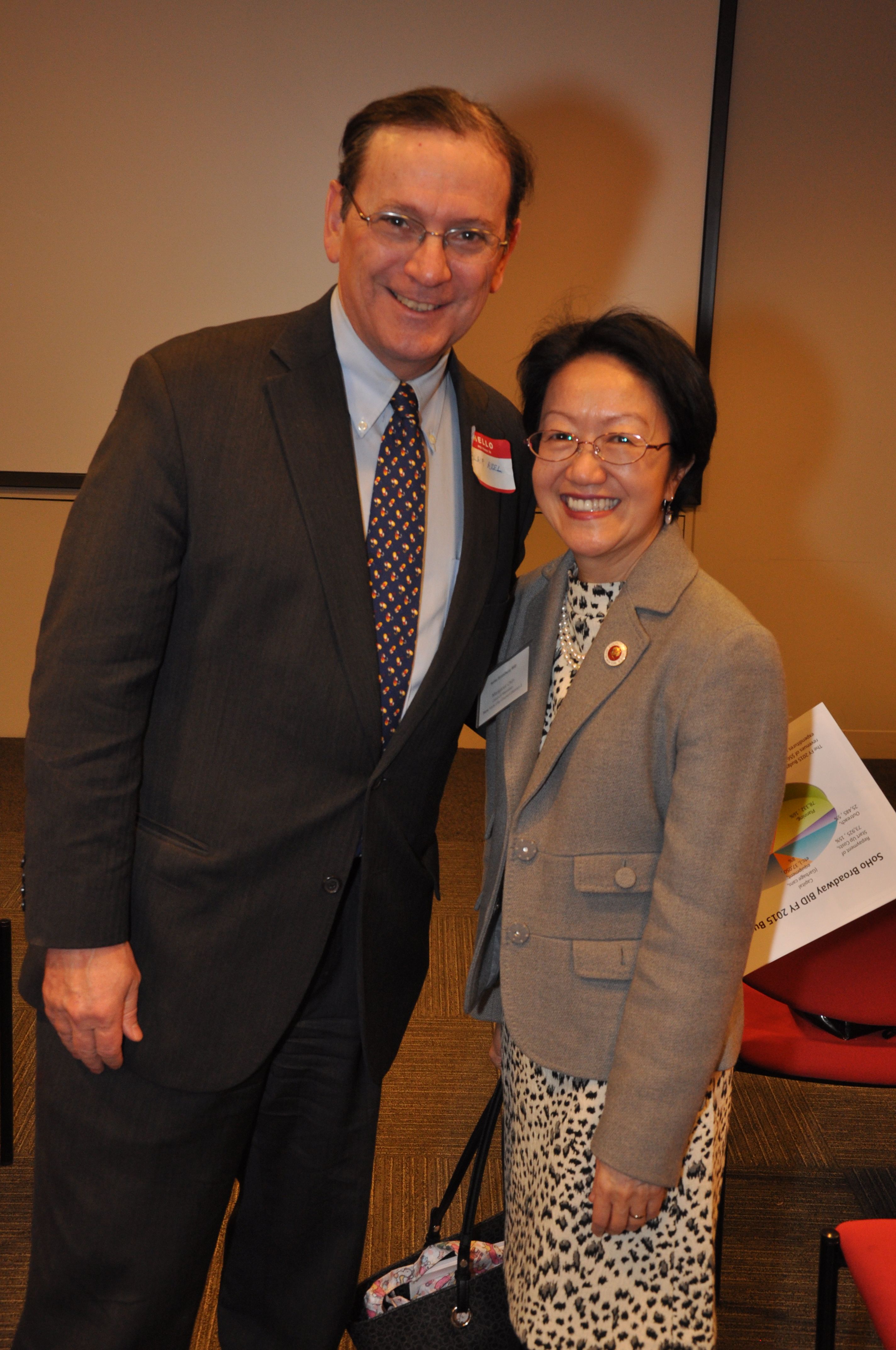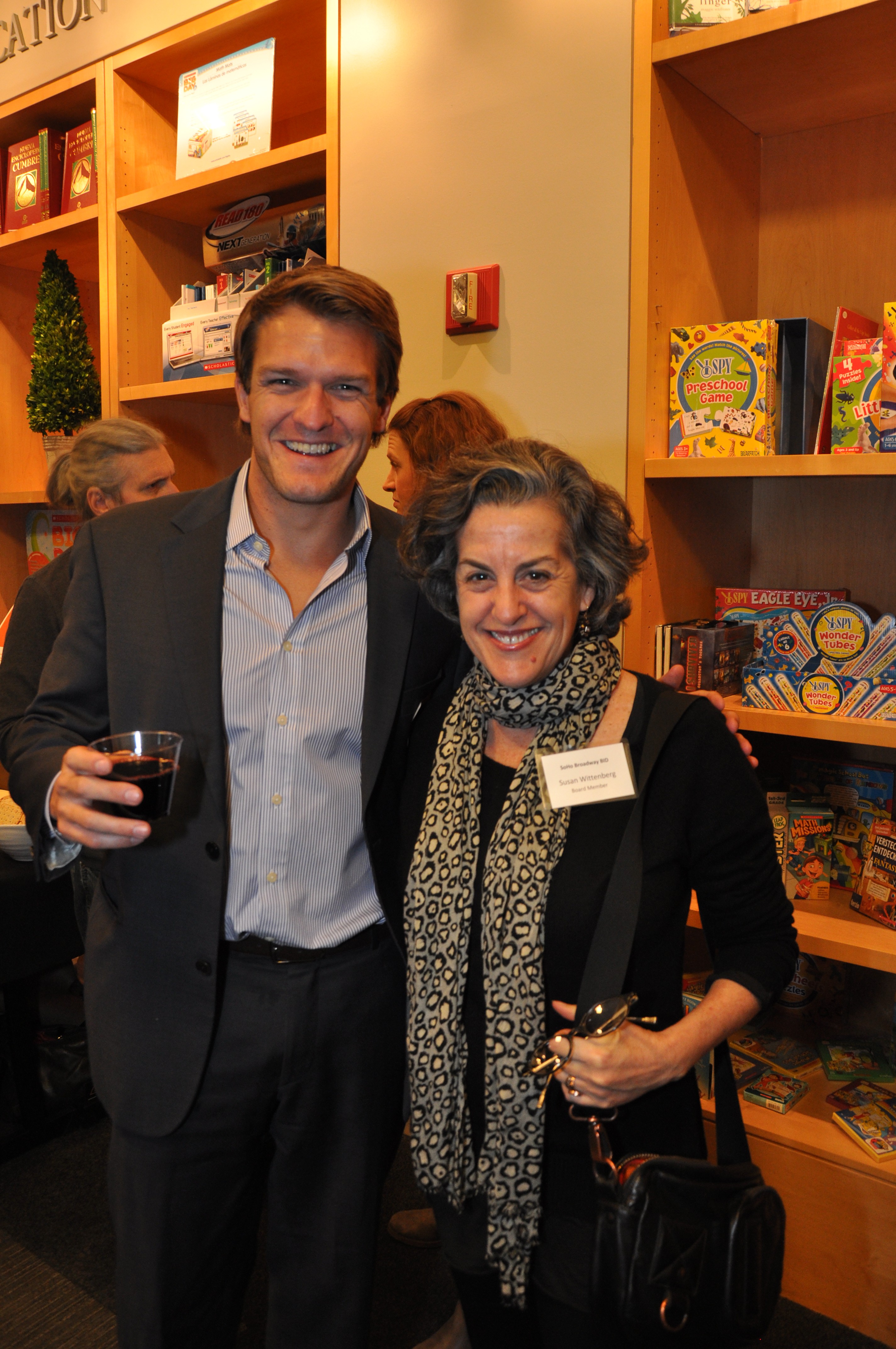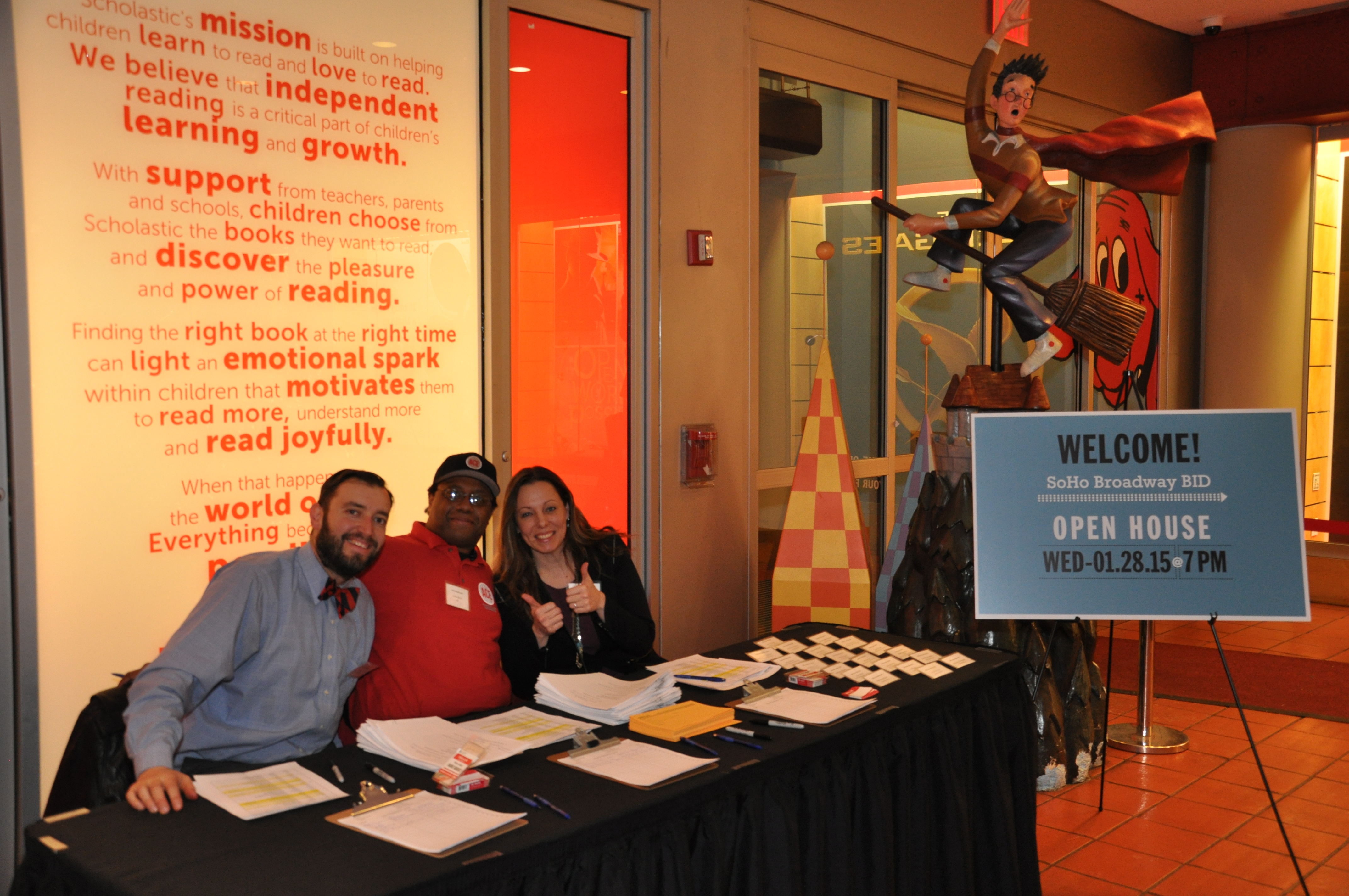 Brian Steinwurtzel (President) and Emily Hellstrom (Vice President) welcomed approximately 100 guests to the Open House that was held at Scholastic. The program included remarks from Council Member Margaret Chin and Community Board 2 Chairperson Tobi Bergman. In reflecting on the lengthy approval process, Council Member Chin highlighted the importance of giving residential property owners and tenants an expanded voice within the SoHo Broadway BID.